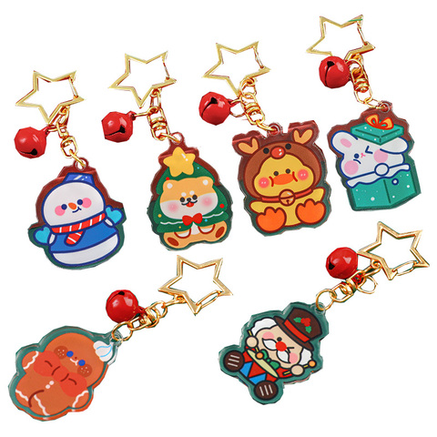 Fábrica Custom Holographic Cartoon Snowman Impresso Feliz Natal Chaveiro Acrílico Anel Chave para Festival Presente Plástico Chaveiros